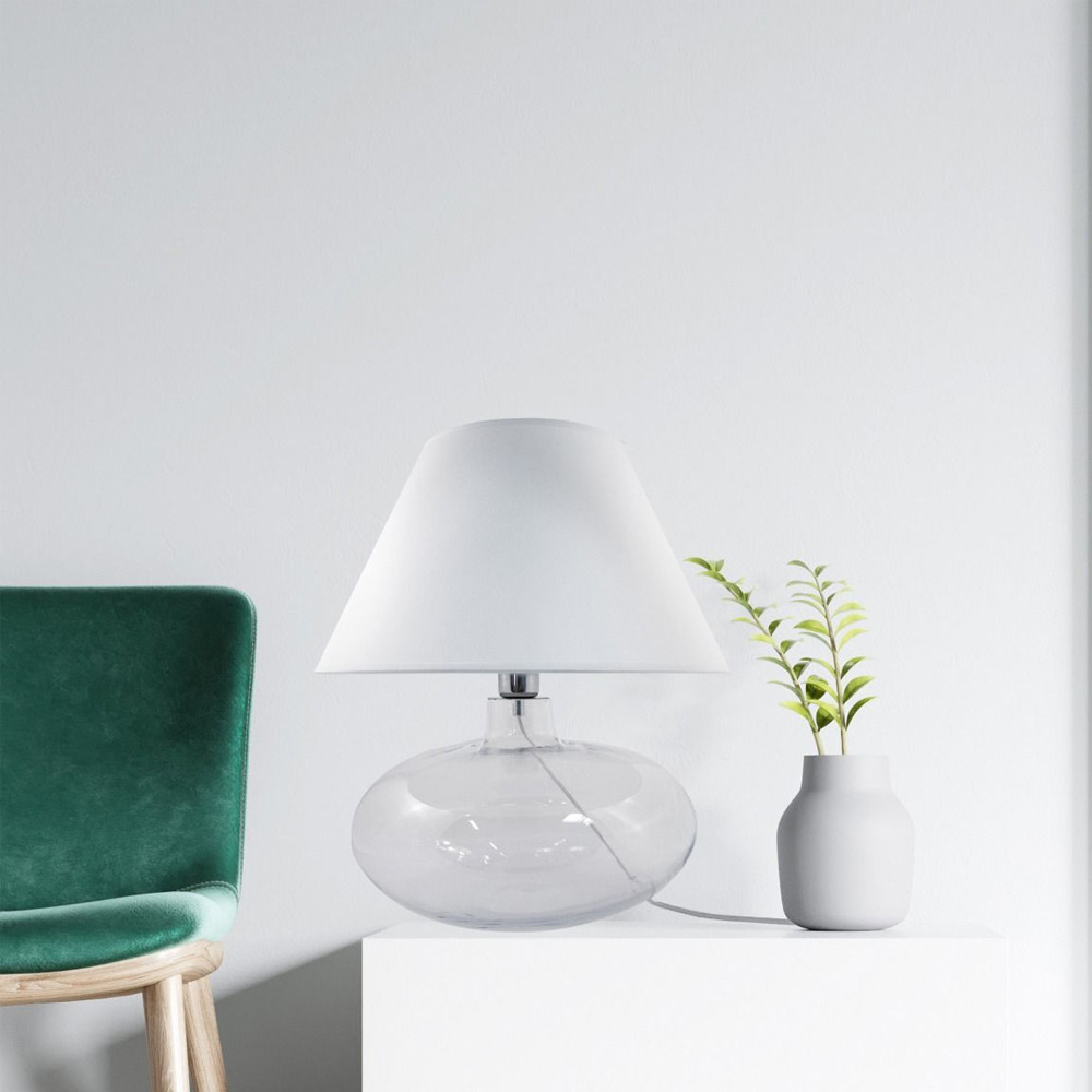 Бренд Zumaline Страна Польша Коллекция MERSIN Интерьер Для гостиной Цвет Белый Цвет арматуры Прозрачный Цвет плафонов Белый Тип лампочки (основной) Накаливания Материал арматуры Стекло Материал плафона Ткань Количество ламп 1 Тип цоколя E27 Направление плафонов Вверх Форма плафона Конусный Место установки На стол Стиль Современный Степень защиты 20 PDF-страница ZUMALINE_2021_27.pdf Высота 370 Виды материалов Стеклянные Диаметр 300 Гарантия 12