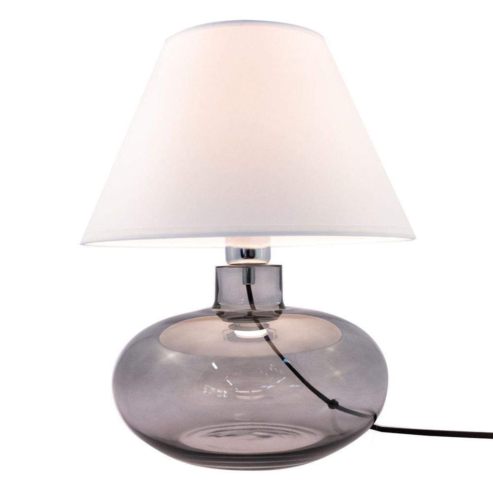 Бренд Zumaline Страна Польша Коллекция MERSIN Интерьер Для гостиной Цвет Белый Цвет арматуры Дымчатый Цвет плафонов Белый Тип лампочки (основной) Накаливания Материал арматуры Стекло Материал плафона Ткань Количество ламп 1 Тип цоколя E27 Направление плафонов Вверх Форма плафона Конусный Место установки На стол Стиль Современный Степень защиты 20 PDF-страница ZUMALINE_2021_27.pdf Высота 370 Виды материалов Стеклянные Диаметр 300 Гарантия 12